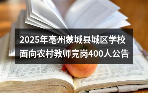 【2025年亳州蒙城县城区学校面向农村教师竞岗400人公告】相关岗位: