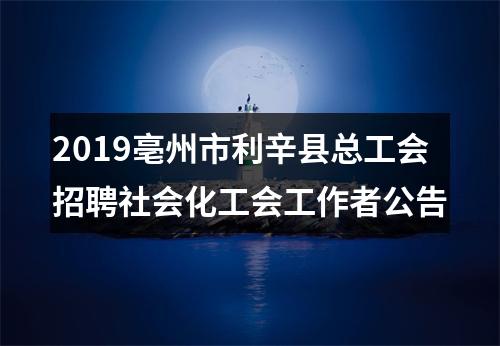 原标题:2019亳州市利辛县总工会招聘社会化工会工作者公告