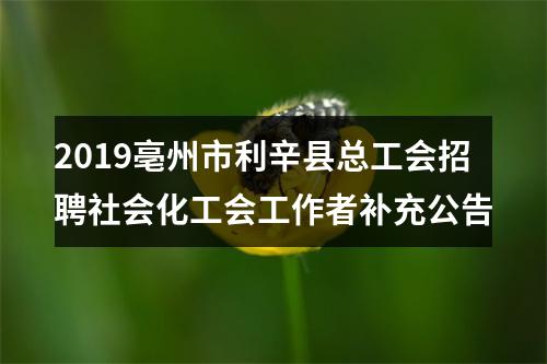 【2019亳州市利辛县总工会招聘社会化工会工作者补充公告】相关岗位:
