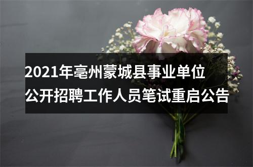 原标题:【2021年度事业单位考试】2021年度蒙城县事业单位公开招聘工作人员笔试重启公告