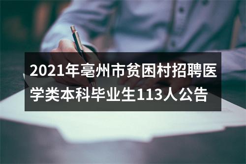【2021年亳州市贫困村招聘医学类本科毕业生113人公告】相关岗位: