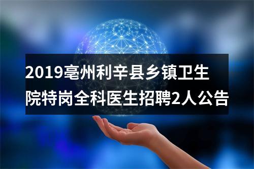【2019亳州利辛县乡镇卫生院特岗全科医生招聘2人公告】相关岗位: