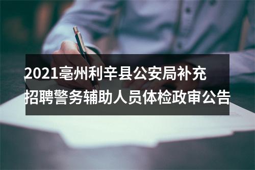 【2021亳州利辛县公安局补充招聘警务辅助人员体检政审公告】相关岗位: