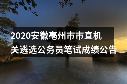 安徽中公教育查看更多考试信息。原标题:2020年度亳州市市直机关公开遴选公务员笔试成绩公告