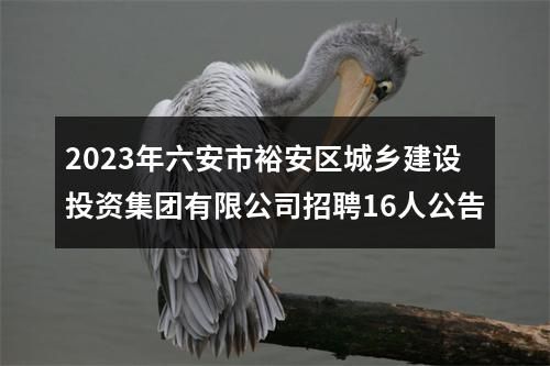 【2023年六安市裕安区城乡建设投资集团有限公司招聘16人公告】相关岗位: