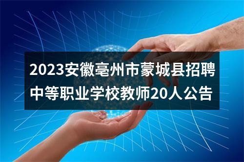 【2023安徽亳州市蒙城县招聘中等职业学校教师20人公告】相关岗位: