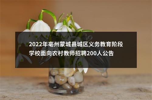 【2022年亳州蒙城县城区义务教育阶段学校面向农村教师招聘200人公告】相关岗位: