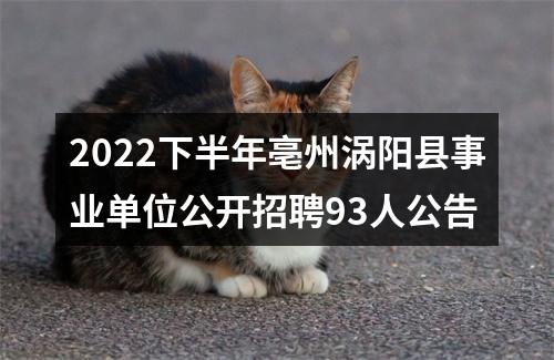 【2022下半年亳州涡阳县事业单位公开招聘93人公告】相关岗位: