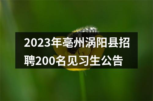 原标题:关于涡阳县2023年度招聘200名见习生的公告