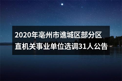 亳州市谯城区2020年部分区直机关事业单位公开选调工作人员工作领导小组办公室