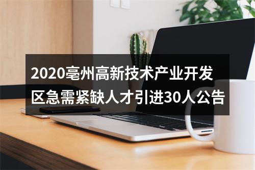 【2020亳州高新技术产业开发区急需紧缺人才引进30人公告】相关岗位: