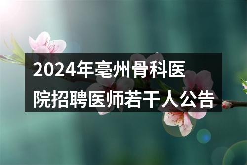 【2024年亳州骨科医院招聘医师若干人公告】相关岗位: