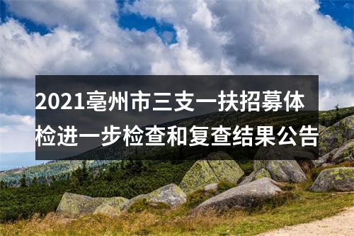 原标题:亳州市2021年三支一扶招募体检进一步检查和复查结果公告