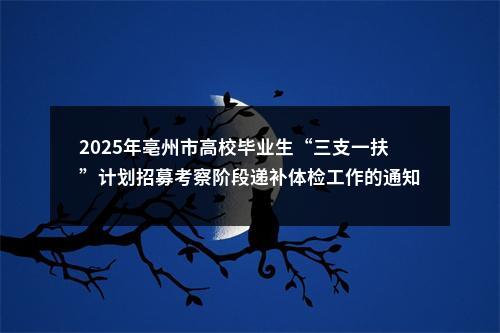 原标题:亳州市2025年高校毕业生“三支一扶”计划招募考察阶段递补体检工作的通知
