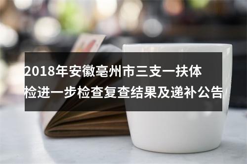 【2018年安徽亳州市三支一扶体检进一步检查复查结果及递补公告】相关岗位: